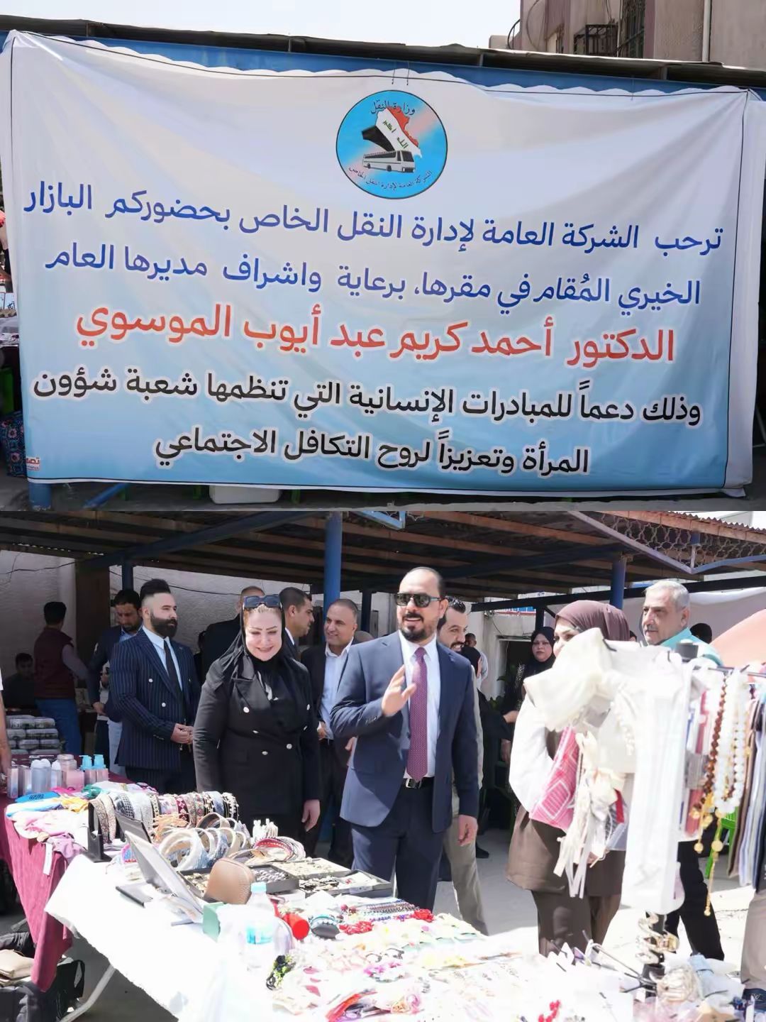 مدير عام النقل الخاص يفتتح بازارا خيريا نظمته شعبة شؤون المرأة لدعم المبادرات الانسانية