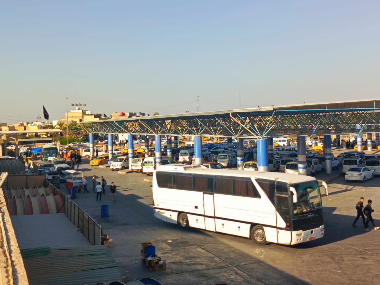 النقل الخاص تنصب مسقفات جديدة في مرآب كربلاء الموحد استعداداً لزيارة الأربعين