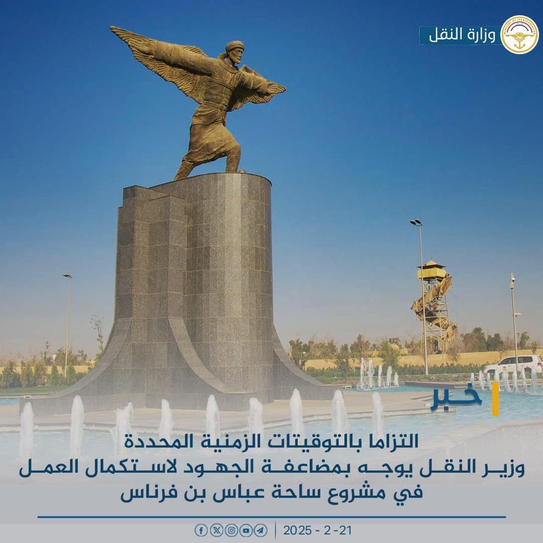 أوعز وزير النقل الأستاذ رزاق محيبس السعداوي، إلى الشركة العامة لإدارة النقل الخاص بتكثيف الجهود وإدامة زخم العمل في مشروع ساحة عباس بن فرناس وبشكل مستمر على مدار الساعة لضمان إنجازه ضمن الجدول الزمني المحدد.وبين المكتب الاعلامي للوزارة ، ان وزير النقل وجه منذ البدء بالمشروع قبل نحو أسبوعين، على أن تكون الأعمال مستمرة على مدار الساعة بثلاث وجبات (صباحية، مسائية، وليلية)، لضمان إنجازه ضمن الجدول الزمني المحدد. وبين المكتب الاعلامي للوزارة ان وزير النقل وجه منذ البدء بالمشروع قبل نحو اسبوعين على ان تكون الاعمال مستمرة على مدار الساعة لضمان انجازه ضمن الجدول الزمني المحدد . وأضاف : يأتي هذا التوجيه استجابة لتوجيهات رئيس مجلس الوزراء المهندس محمد السوداني وضرورة إكمال المشروع قبل شهر أيار 2025، كونه أحد المشاريع المرتبطة بالتحضيرات للقمة العربية المزمع عقدها في العراق خلال الشهر ذاته. وأوضح المكتب الاعلامي ، نقلا عن مدير الشركة العامة لإدارة النقل الخاص الدكتور أحمد الموسوي : أن العمل مستمر في تنفيذ مشروع ساحة عباس بن فرناس الذي يُعد أحد المشاريع المهمة، حيث تم التعاقد مؤخرًا مع إحدى الشركات لتنفيذه. وأشار الموسوي : أن هناك لجان متابعة مكثفة تعمل بالتنسيق مع الشركة المنفذة لمراقبة سير العمل ونقل التقارير بشكل دوري، مؤكدا أن الشركة العامة للنقل الخاص المكلفة بالمشروع في حالة استنفار تام حتى اكتمال التنفيذ في الموعد المحدد.